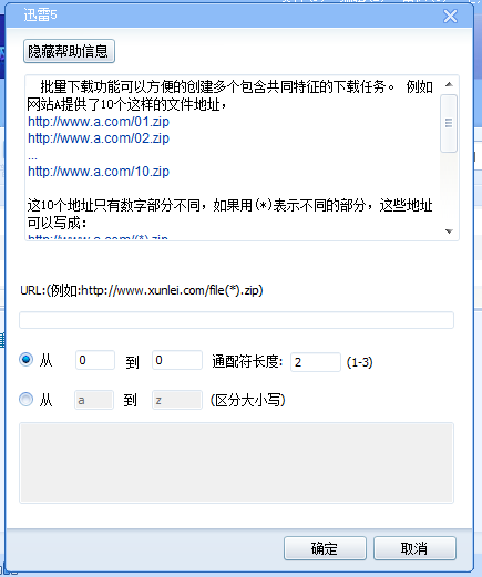 通配符长度指的是这些地址不同部分数字的长度, 例如,从01.zip-10.zip,通配符长度就是2, 从001.zip-010.zip时通配符长度就是3;在填写从xxx到xxx的时候,虽然是从01-10或者是001到010,但是,当你设定了通配符长度,就只需要填写成从1到10。