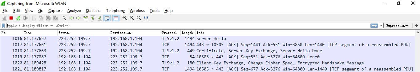 数据包抓取成功,为了不让其他无用数据包影响分析,你可以在过滤栏设置过滤条件,过滤数据包列表,获取结果如下,