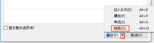 然后点击右下角【播放】按钮旁边的小三角,选择【转换】,快捷键【Alt+O】,