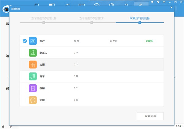 启用超级恢复功能,选择需要恢复的设备,进行下一步,