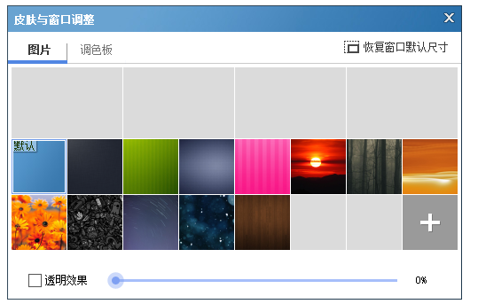如果你想要修改软件皮肤,点击【皮肤与窗口调整】,弹出面板,选择【图片】,挑选自己喜欢的效果,