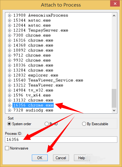 选择其中一个进程,小编选择的是chrome浏览器,进行如下设置,点击OK,