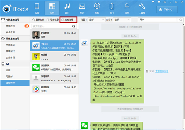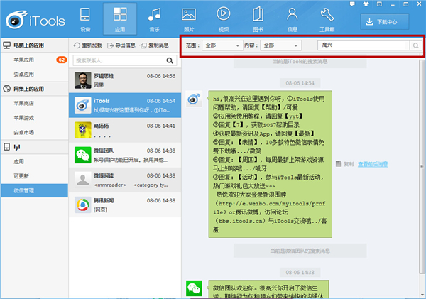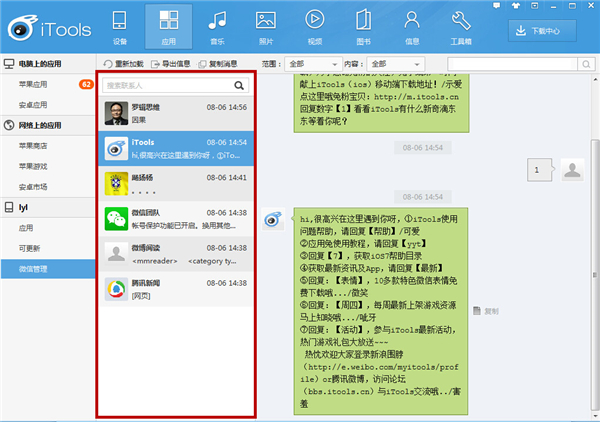 日常使用微信已经成为大家的一种习惯,由此,微信管理也变得至关重要,毕竟经常有人误删聊天信息。如果你在电脑中安装了iTools软件,可以用它管理微信,Android、iOS设备统统适用。