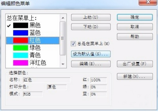 进入公式编辑器的“编辑颜色菜单”后,在对话框里的颜色列表中点击你所需要的颜色,比如显眼的红色,然后再点击对话框中间一栏的“设为默认值”的按钮。