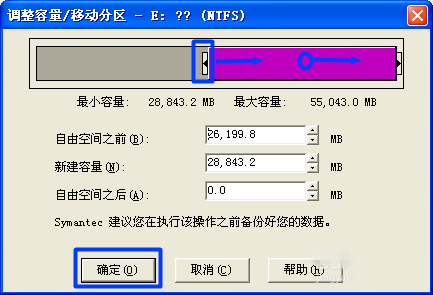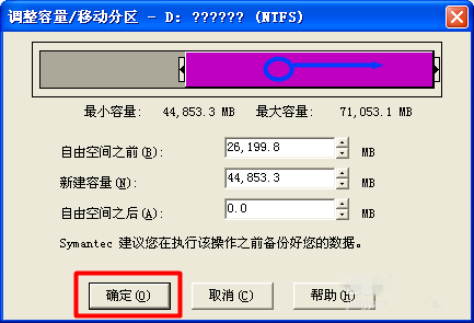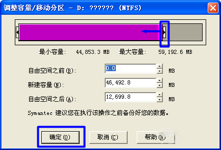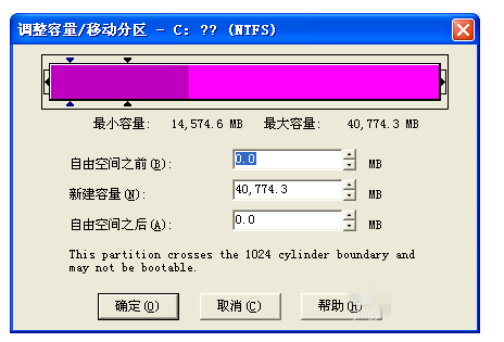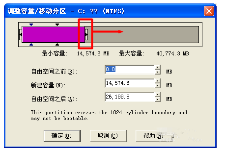 如图,拖动此滑块来调整C盘容量,点击确定,成功扩大C盘容量。