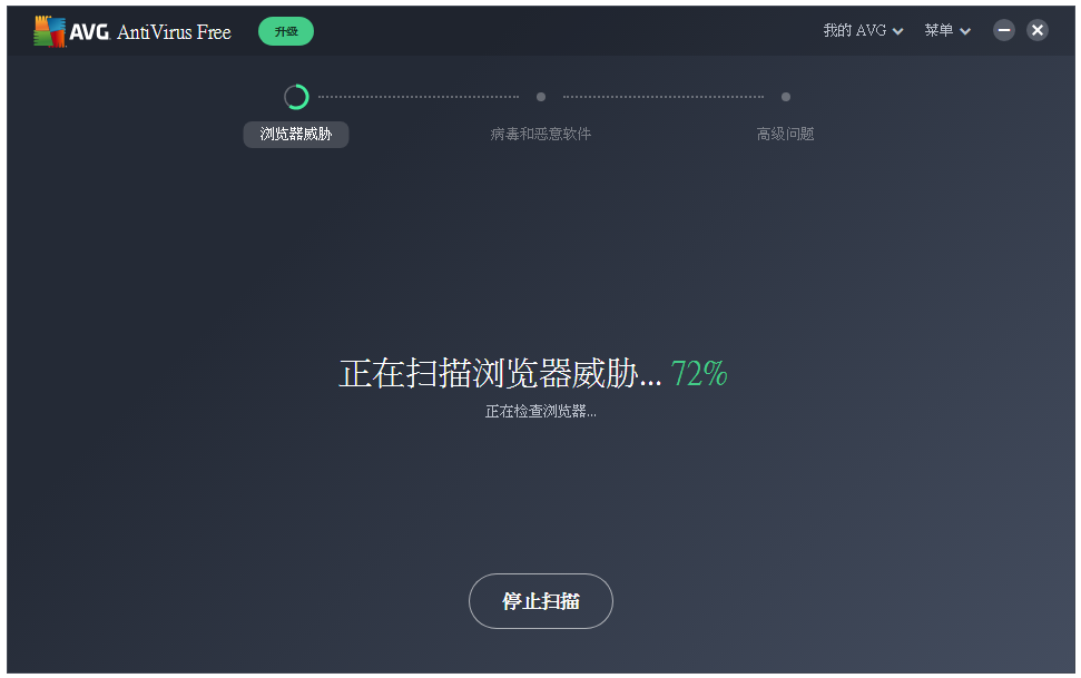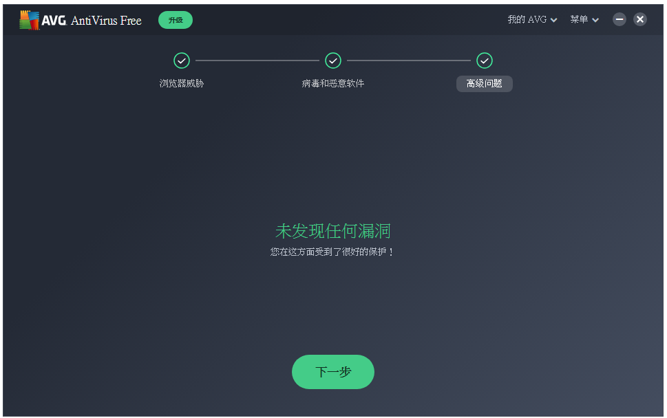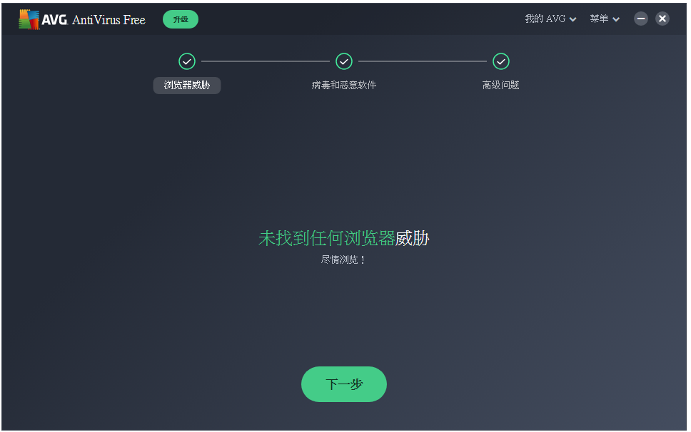 扫描结束,并未发现浏览器威胁,计算机中也不存在病毒、恶意软件和漏洞,