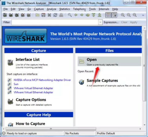 5、在软件界面点击“Open”,可以打开抓取文件,如下图: