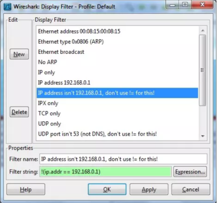 7、也可以点击软件界面“Analyze”,在弹出窗口“Display Filters”列表选择一项来创建新的过滤条件,如下图:
