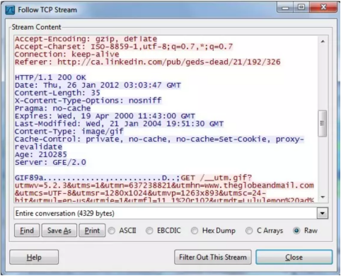 10、关闭后,Wireshark显示构成会话的报文,如下图: