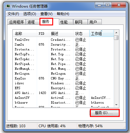 按住快捷键键【Ctrl+Shift+ESC】,调出任务管理器,打开Windows任务管理器,切换【服务】一栏,点击右下角的【服务】选项,