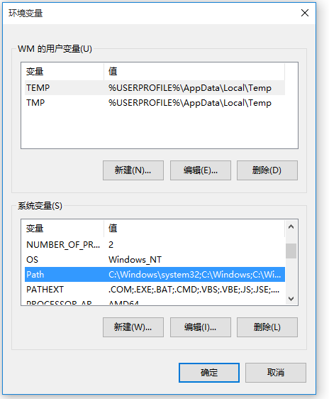 如图,在【系统变量】中找到PATH,点击【编辑】,弹出对话框,将ADB工具所在路径添加到变量值,点击确定,