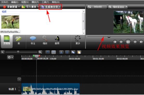 5、在窗口右上角可以预览剪辑的视频效果,不满意则重复第四个步骤,效果满意,就点击“生成与我来教你”,如图所示: