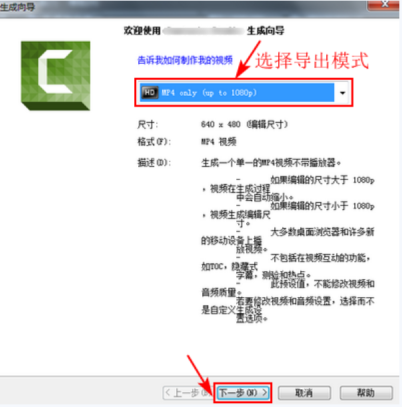 6、在弹出窗口选择自己想要的导出模式,点击“下一步”,如图所示: