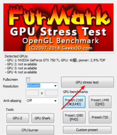 提示:使用FurMark对电脑CPU有物理伤害,尽量少用。