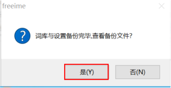 6、在弹出界面选择“是”就可以将词库与设置备份,如下图: