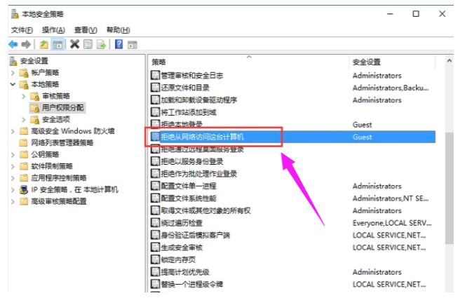 然后在右侧找到【拒绝从网络访问这台计算机】,并且双击,