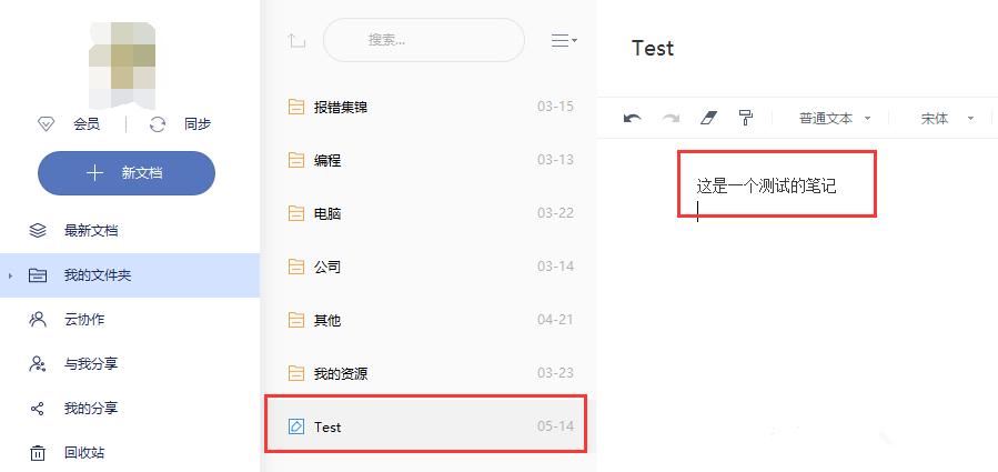 打开有道笔记,登录账号,进入界面,首先创建一个简单的笔记,