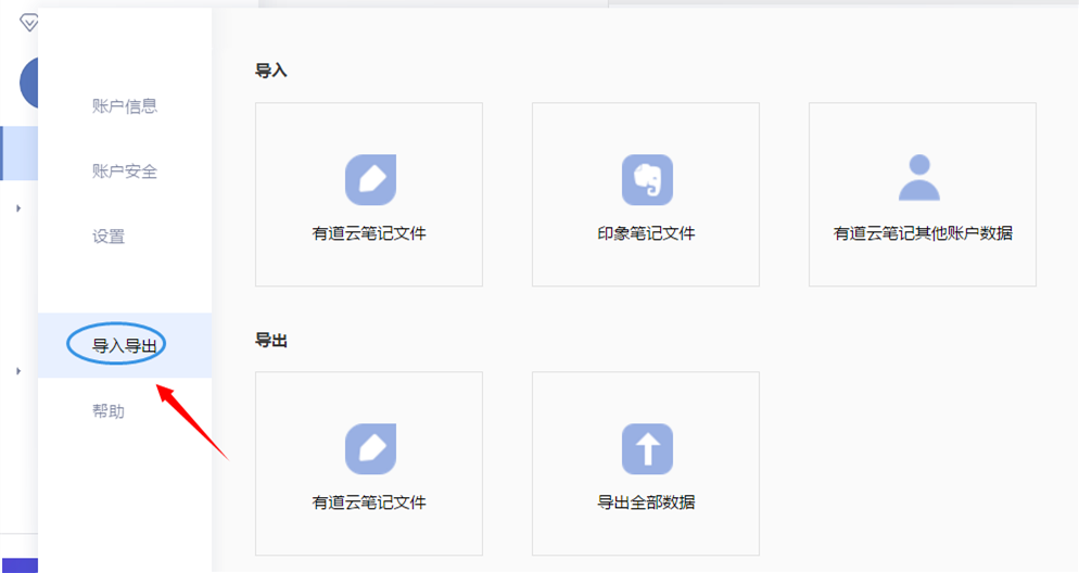 另外,大家还可以将某些重要的记事文件导出到电脑,点击个人头像,弹出对话框,点击【导入导出】功能,你可以将有道云笔记文件全部导出,也可以导入印象笔记文件,