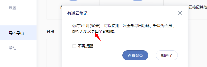 需要注意的是,普通用户每90天只能用一次全部导出功能,升级会员后即可无限使用。