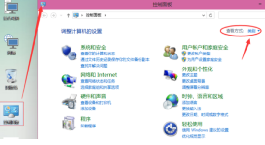 1、点击桌面的“控制面板”,查看方式选择“类别”,如下图: