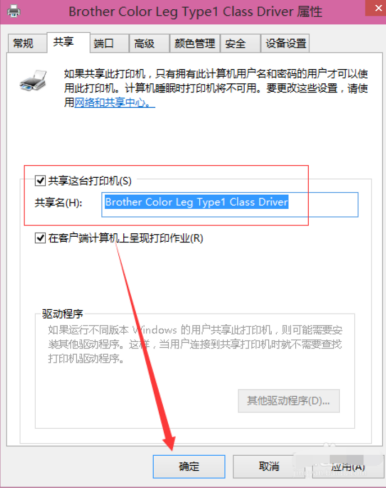4、在弹出界面点击“共享”,勾选“共享这台打印机”,点击“确定,”如下图: