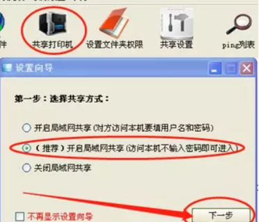 7、在弹出界面点击“共享打印机”,选择第二个选项,然后点击“下一步”,如下图: