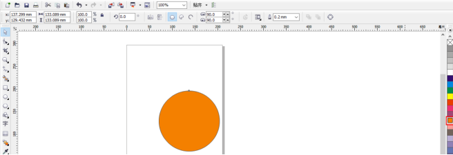 8、选中椭圆并按住键盘上的Delete键就可以删除了,然后点击右侧工具栏色板,选择一种颜色填充正圆,如下图: