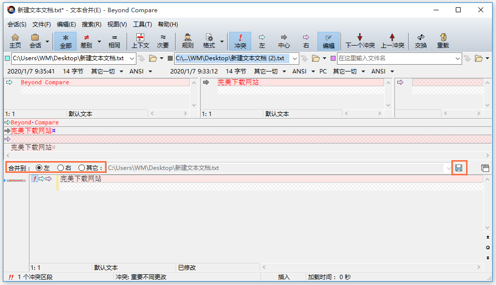 Beyond Compare是广大办公人士常用的一款文件夹/文件对比工具,它不仅支持对比文件、对比文件夹,找出差异,还提供了文件夹合并、文本合并功能。本文就以合并文本为例,简单介绍Beyond Compare的使用方法。