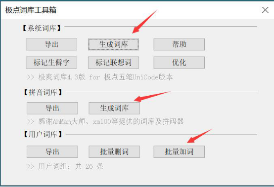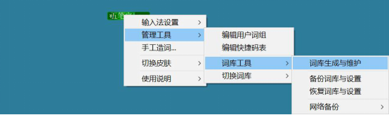 6、极点五笔输入法除了可以进行相关的输入设置,还可以管理词库。单击鼠标右键,“管理工具”中点击“词库生成与维护”。接着在“极点词库工具箱”里可以生成词库、批量加词或者批量删词,能为用户后续使用极点五笔输入法带来很多方便。