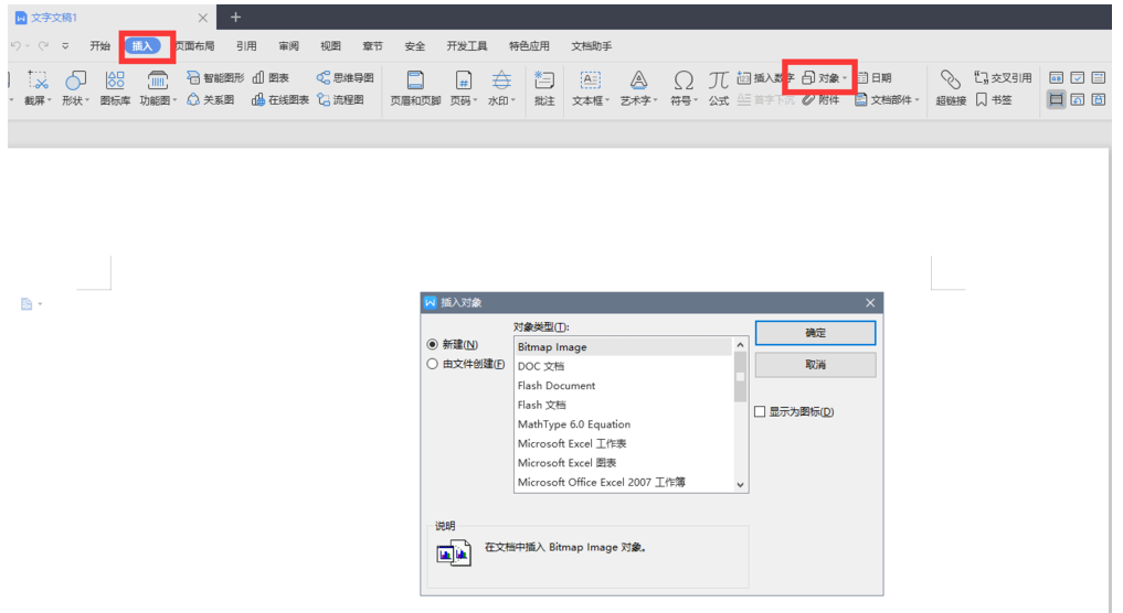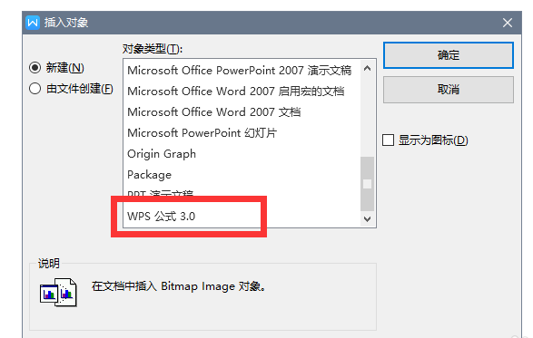 如果想切换WPS自带的公式编辑器,只需在菜单栏点击【插入】——【对象】,弹出面板,选择WPS公式3.0,点击确定,即可成功调用。