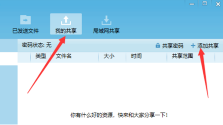 2、在弹出界面点击“我的共享”然后点击“添加共享”,如下图: