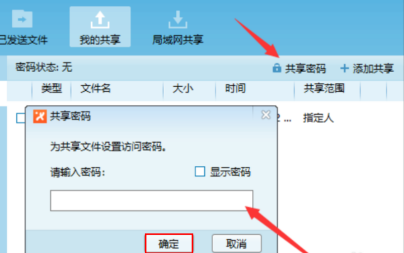 5、在弹出界面点击“共享密码”,输入密码后,点击“确定”,如下图: