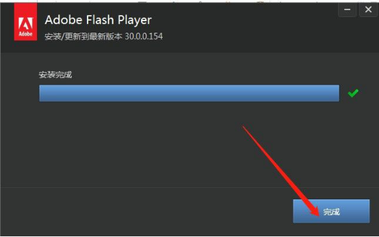 5、给电脑安装flash插件,当完成安装时,会有绿色的打钩符号提示。最后,用户点击界面右下方的“完成”按钮即可完成全部操作。