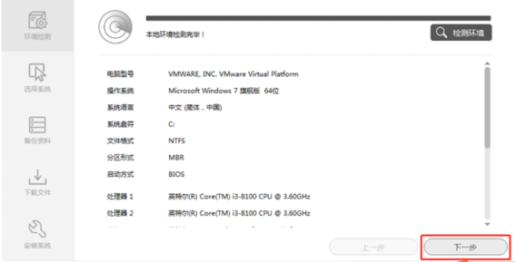2、在弹出界面等待检测环境完成后点击“下一步”,如下图: