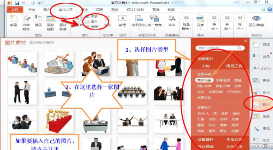 6、在PPT美化大师中,除了可以插入形状,还可以插入图片。点击“图片”,从图片的分类中找到自己想要的图片插入即可。