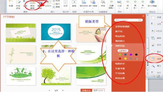 7、当用户新建PPT文档时已经选择了PPT模板,但是突然想要更换模板。那就可以点击“换装”选项,在总多的模板中选择用户想要的一款来更换目前使用的模板。可见,PPT美化大师用起来还是很人性化的。
