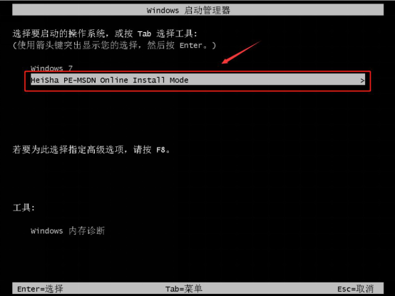 6、重启后的电脑,用户可以选择启动的模式。一般情况下,我们选择PE模式,如下图。