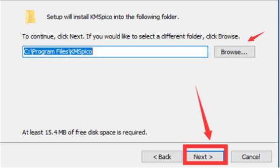 4、接下来,用户要选择kmspico的存放位置,并点击“Next”按钮。