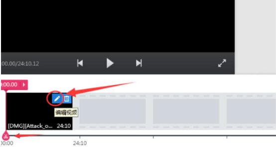 2、在快剪辑中将视频添加完毕后,会自行播放刚才添加的视频。用户拖动下方的剪刀图标对视频进行剪辑,然后,再点击视频预览图中的“编辑视频”的笔形小图标,准备下一步给视频添加字幕。