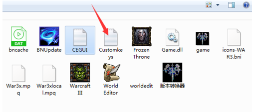 4、退出魔兽争霸,打开魔兽争霸的安装目录,找到customkeys记事本,如图,如果没有这个记事本,就不能自定义快捷键,必须从上网下载一个,