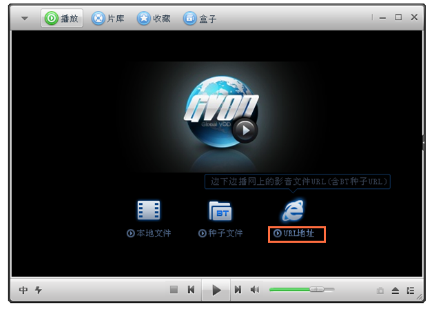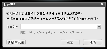 点击【URL地址】,弹出对话框,输入媒体文件的URL地址,点击【确定】,即可播放影音视频,