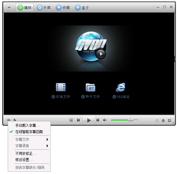 点击左下角的字幕按钮,如图,弹出选项,这里有【手动载入字幕】、【在线智能字幕匹配】等功能,