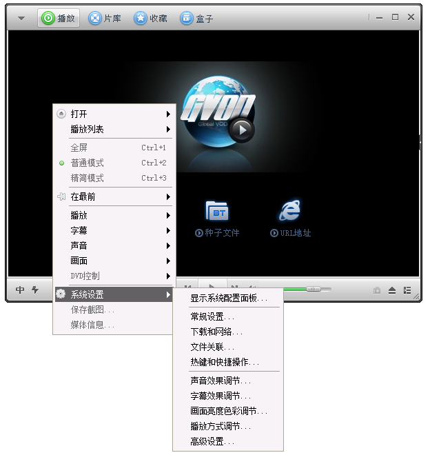点击【系统设置】,这里有【声音效果调节】、【字幕效果调节】、【播放方式调节】等功能,自行调整即可,