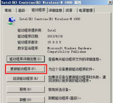 5、点击“驱动程序”,选择“更新驱动程序”,如下图: