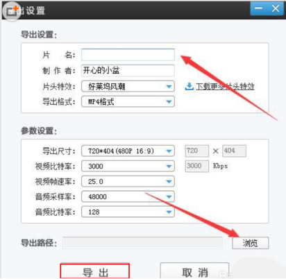 5、在弹出界面设置好所有信息后,点击“浏览”,选择导出路径,然后点击“确定”,如下图: