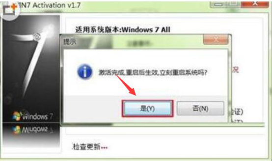 4、激活完成后,win7 activation会弹出如下图的提示对话框。用户点击“是”确定立刻重启系统。