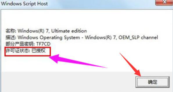 5、电脑重启后,在电脑桌面的开始菜单中,打开运行框,输入“slmgr.vbs -dlv”并按Enter键,即可查看win7系统是否被成功激活。如下图的许可证状态为已授权,那就说明win7 activation已经激活成功。