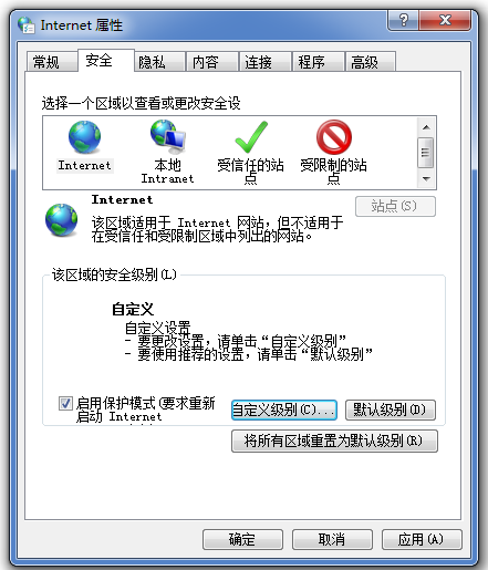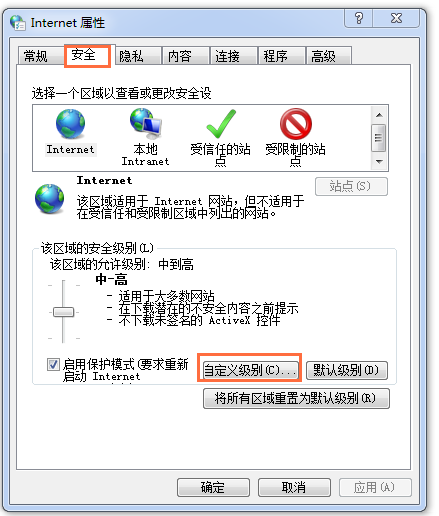进入Internet属性弹窗,切换至【安全】标签,点击【自定义级别】选项,