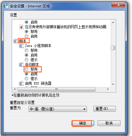 如图,下拉找到【脚本】——【活动脚本】,勾选【禁用】,点击【确定】,