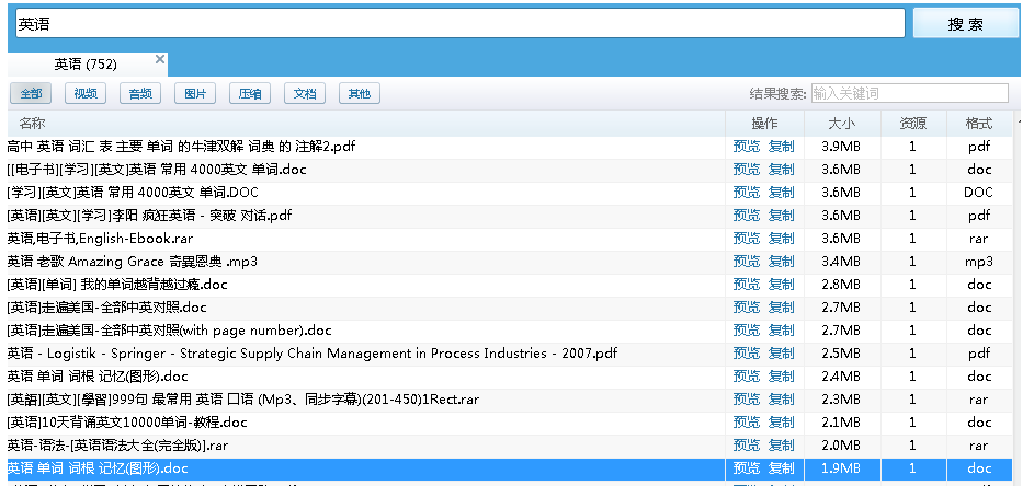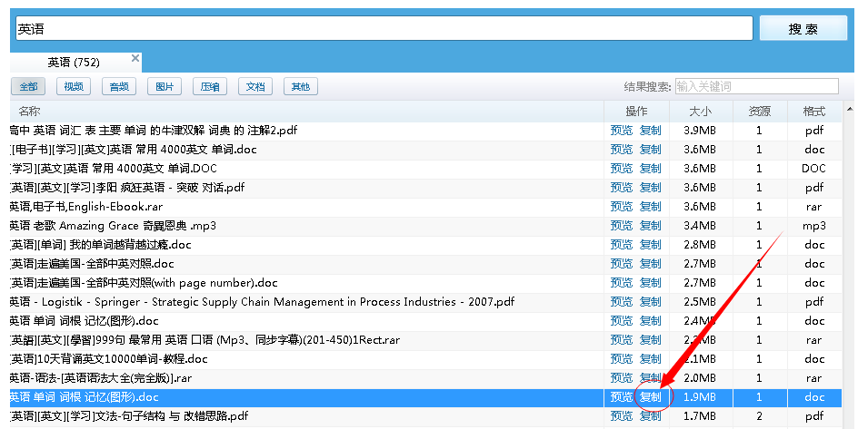找到你需要的资源,选择其中一个,鼠标点击【复制】,